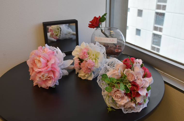 メイクも合わせてピンク系のふわっとしたものにしてもらいました。